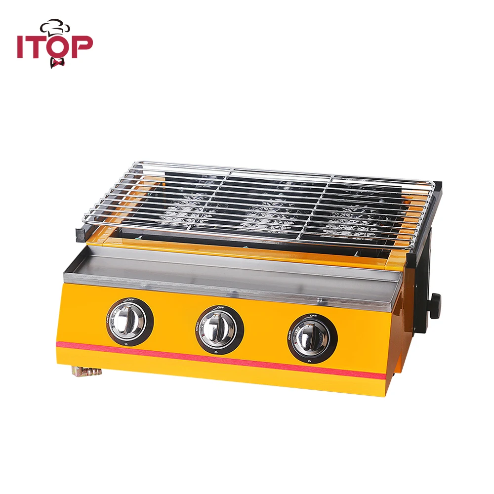 BEST ITOP Gas BBQ Grills infrared gas burner churrasqueira 3 Burners Barbecue Tools For Outdoor Camping