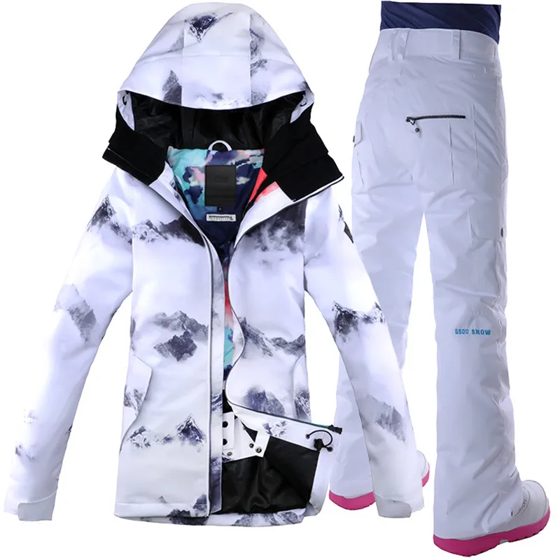 Ski Wear Womens Ski Suit Camp Riding Skiing Snowboard Jacket+Pant GSOU SNOW Women Waterproof Ski Su