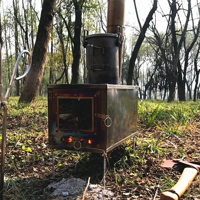bushcraft Outdoor ultralight titanium alloy wood stove detachable stove multipurpose camping tent h