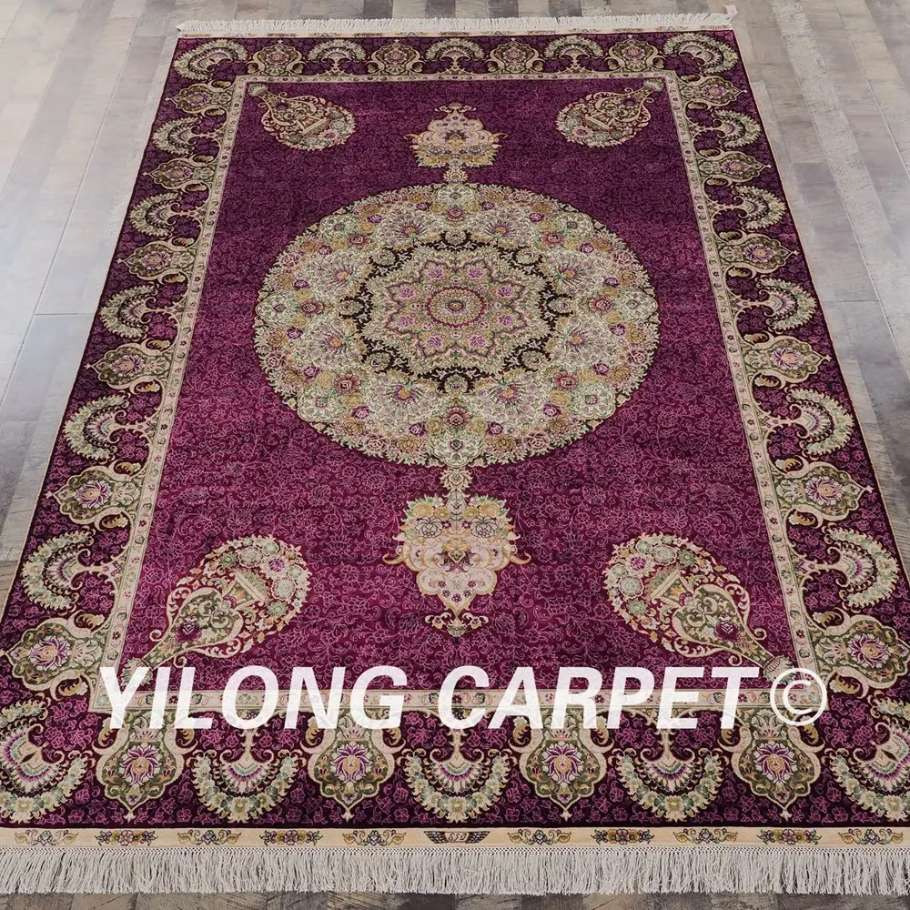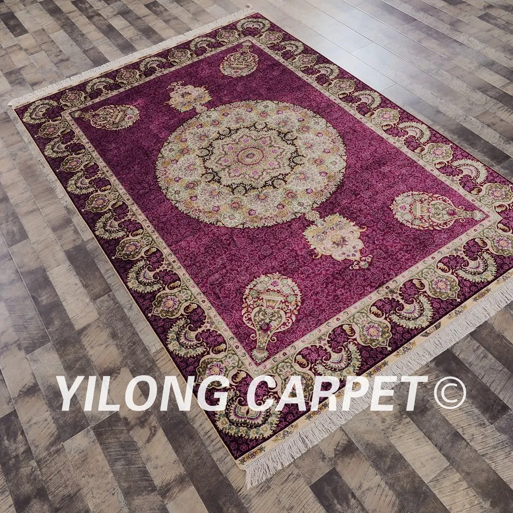 Best Yilong 5.5'x8' Handmade Persian Silk Rug Elegant Medallion Qum Carpet (SL147A5.5x8)